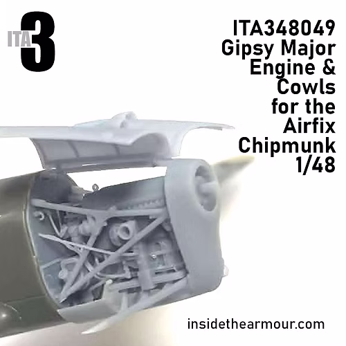 Home / Inside the Armor (ITA3) / 1/48 Aircraft / ITA348049 1/48 Gipsy Major Engine & Cowls for Airfix Chipmunk ITA348049 1/48 Gipsy Major Engine & Cowls for Airfix Chipmunk$18.00 ITA348049 1/48 Gipsy Major Engine & Cowls for Airfix Chipmunk quantity Add to cart SKU: ITA348049 Categories: 1/48 Aircraft, Inside the Armor (ITA3) Description Description A set of 1/48 Gipsy Major engine and Cowls for the Airfix Chipmunk